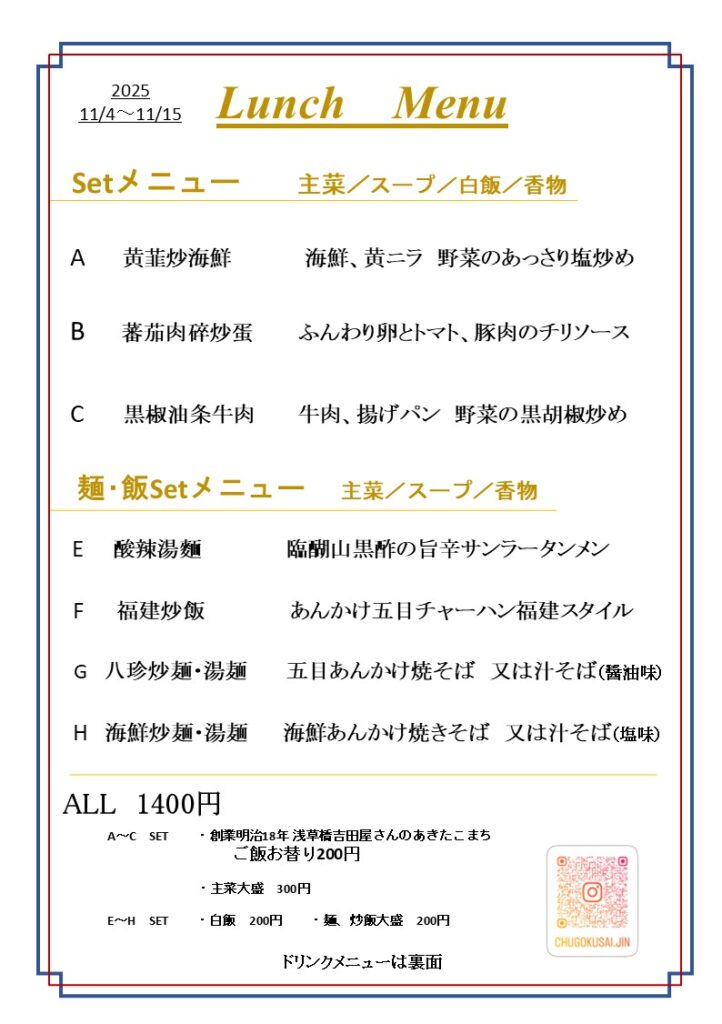 11月ディナーおすすめ&ランチメニュー 投稿公開日:2025年11月2日 投稿カテゴリー:お知らせ おすすめ 9月おすすめメニュー & 9/5~ランチ 2023年9月4日 7月2日(火)~一部メニュー価格改定のお知らせ 2024年7月3日 5/21~ランチメニュー 2024年5月24日 コメントを残す コメントをキャンセルコメントコメントする名前またはユーザー名を入力してください メールアドレスを入力してコメント Web サイトの URL を入力してください。(任意) 次回のコメントで使用するためブラウザーに自分の名前、メールアドレス、サイトを保存する。