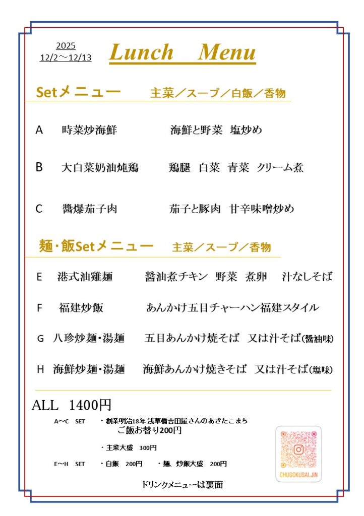 12月ディナーおすすめ&ランチメニュー 投稿公開日:2025年11月30日 投稿カテゴリー:お知らせ おすすめ 8/21~9/2 ランチメニュー 2023年8月20日 2025 2月営業予定 2025年2月5日 10/21(火)~ランチメニュー 2025年10月20日 コメントを残す コメントをキャンセルコメントコメントする名前またはユーザー名を入力してください メールアドレスを入力してコメント Web サイトの URL を入力してください。(任意) 次回のコメントで使用するためブラウザーに自分の名前、メールアドレス、サイトを保存する。